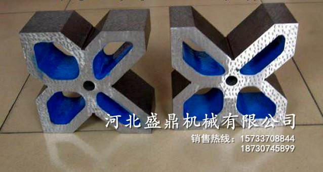 主要用來安放軸,圓盤,套筒等圓形工件,以便找出中心線與劃出中心線。通常V型塊都是一副兩塊,兩塊的平面與V型槽都是在一次安裝中磨出的。精密V型塊的尺寸相互表面間的垂直度,平行度誤差不會_過0.01毫米,V型槽的中心線必需在V型架的對稱平面內并與底面平行,平行度,同心度的誤差也不會_過0.01毫米,V型槽半角誤差在±30~±1范圍內。精密V型塊也可以做劃線,帶有夾持弓架的V型塊,可以把圓柱形工件牢固的夾持在V型塊上,翻轉到各個位置劃線。