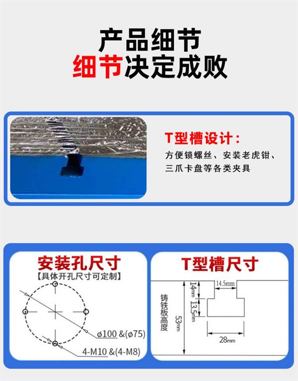 攻絲機平臺的規格: 常見規格為500X800、600X900 ,形規格可以根據客戶實際要求定做加工訂做,攻絲機平臺工作面