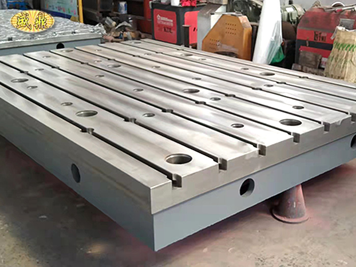 鑄鐵焊接平板/焊接平臺是一種廣泛應用于鉚焊工藝的基礎鑄鐵焊接平板,在工作面上有用來清理鉚焊時的一些鐵渣和焊接廢棄物的孔和用來固定焊接件的T型槽。